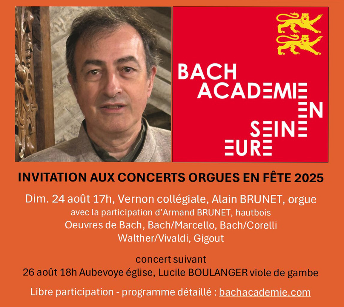 Alain BRUNET, conservateur de l’orgue Kern de Vernon, co-titulaire des grandes-orgues du Temple Saint-Éloi à Rouen, avec la participation d’Armand Brunet, hautbois.